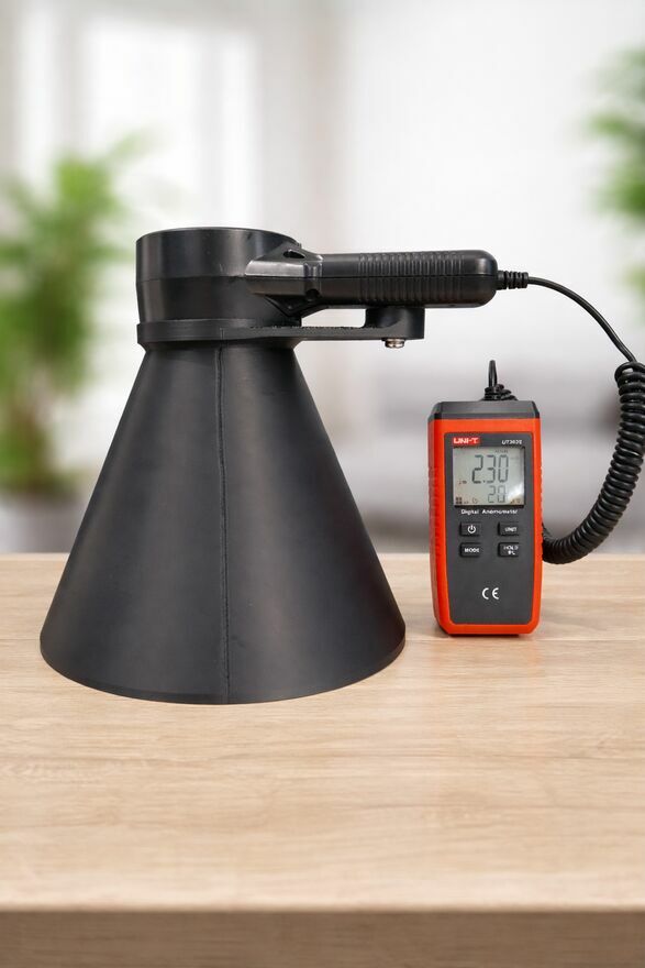 Mam na sprzedaż kołnierz do wiatromierza/anenomierza firmy UNI-T, model UT363S. Za pomocą tego leja ustawisz rekuperację, sam bez fachowej kosztownej pomocy.Kołnierz trzyma się bardzo dobrze wiatromierza i nie wypada.