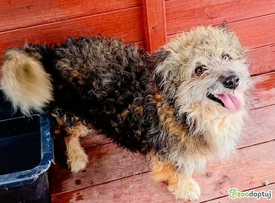 Loczek to niewielki piesek, waży około 10 kg i ma około 9 lat. Jest dość nieśmiały – w pierwszym kontakcie nie daje się jeszcze pogłaskać ani zapiąć na smycz, dlatego będzie wymagał cierpliwości i przyuczenia.