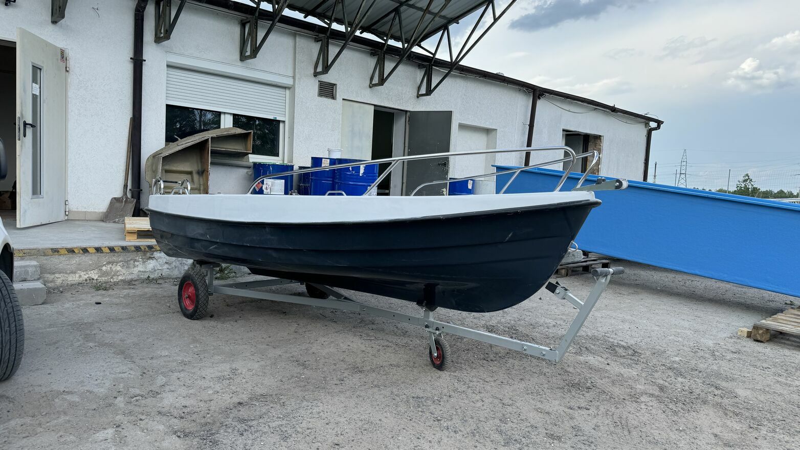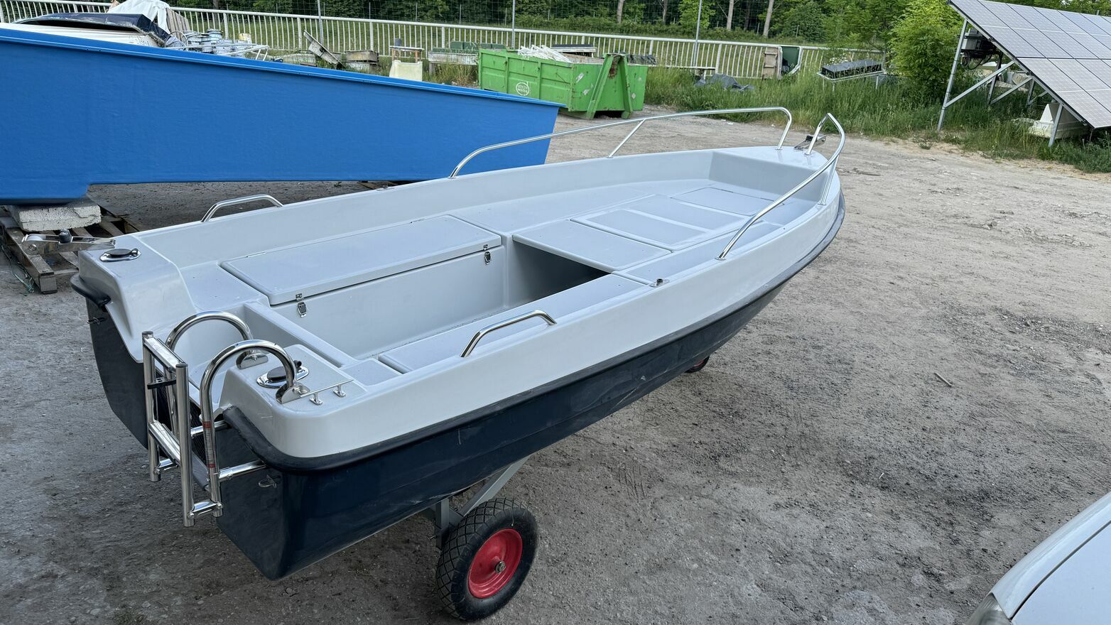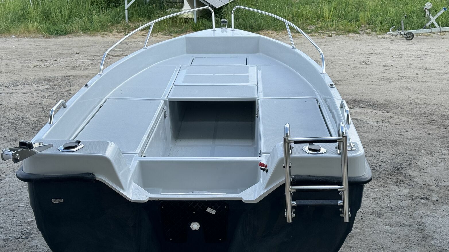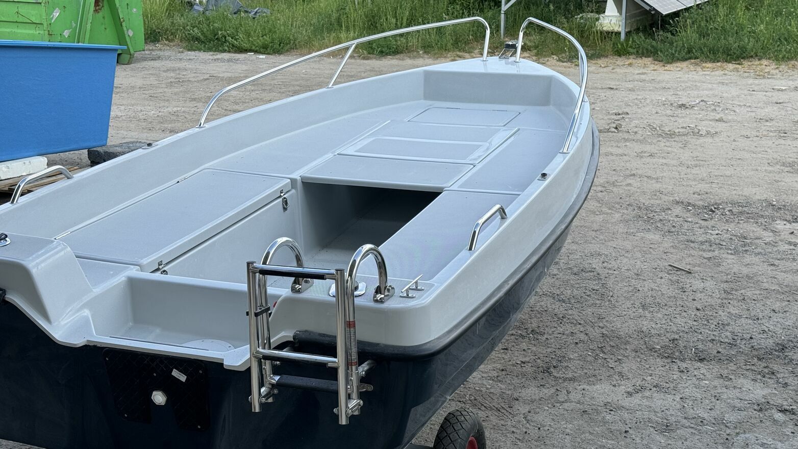 Łódka rekreacyjno-wędkarska z drabinką i pokładem słonecznym