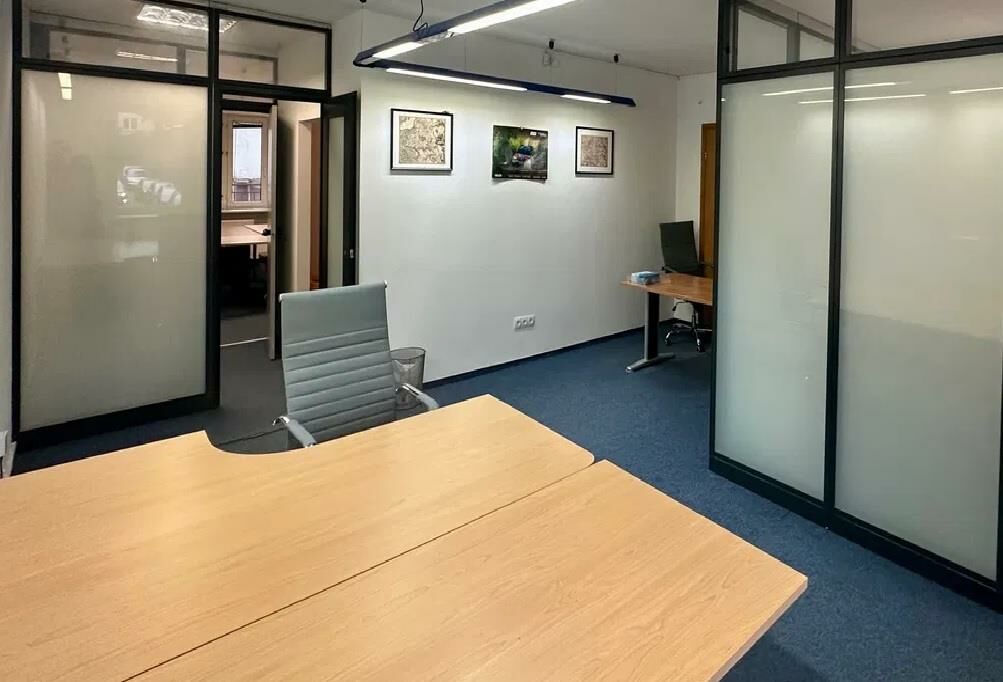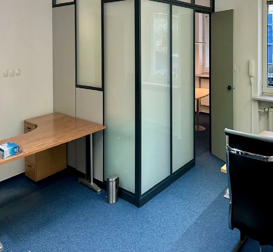 Lokal biurowy o powierzchni 89m2 położony w budynku na bardzo wysoki parter/półpiętro zlokalizowanego na Marymoncie.Powierzchnia ok 89m2= Ca 77 m2 biura + ok.12 m użytkowej części wspólnej - kuchnia, korytarz , wc.