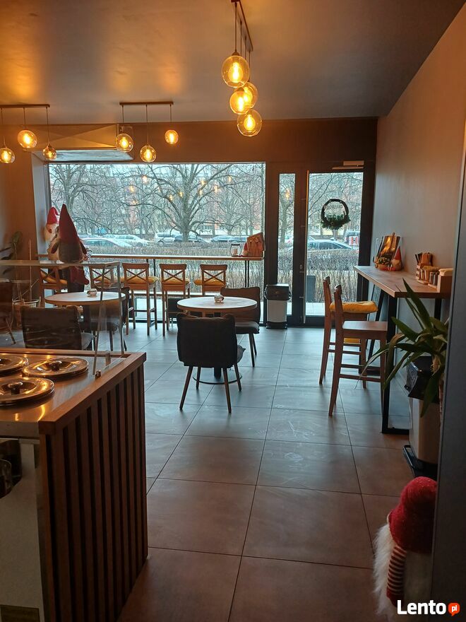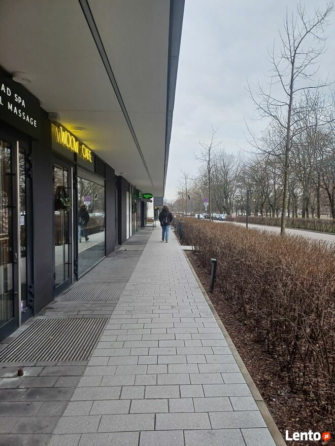 Lokal znajduje się na parterze, witryny wychodzą na ul. Żwirki i Wigury.