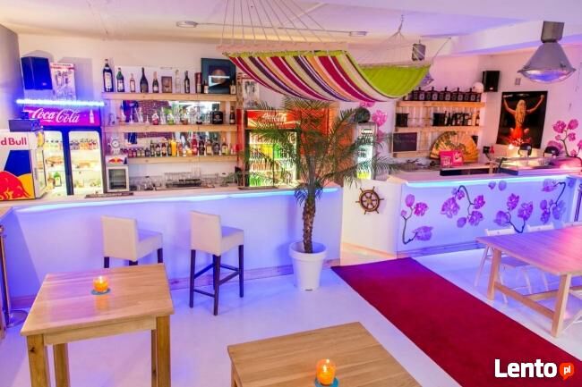 Lokal wyposażony jest: w dwa podświetlane bary, profesjonalne nagłośnienie ( wzmacniacz, DJ-ka, CD-Player, mikser) parkiet do tańczenia, oświetlenie LED, oświetlenie DISCO, wytwornicę baniek i dymu, lasery, ruchomą głowicę świetną, kanapy, stoły biesiadne, 2 huśtawki, Palmy Daktylowe, nalewaki do piwa, miejsce do odpoczynku, WC oraz pokój socjalny