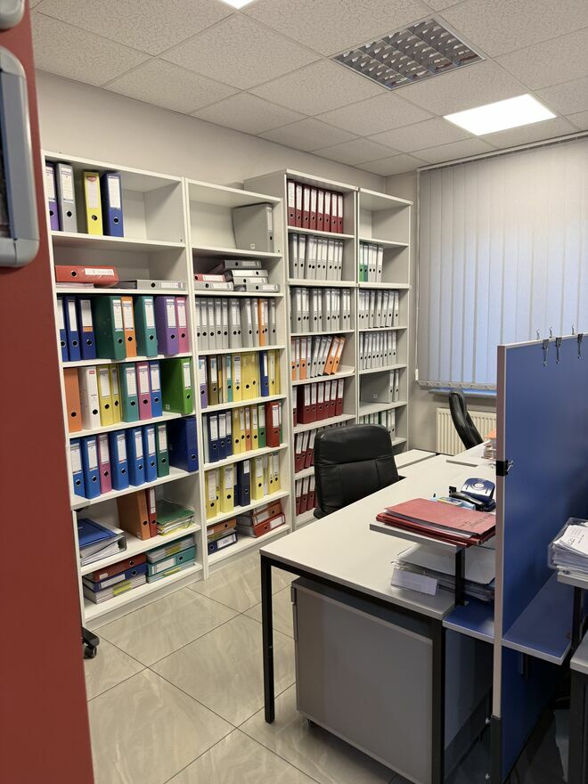 Wyposażony w klimatyzację, sieć komputerową, sieć internetową oraz zaplecze socjalne i magazynowe.