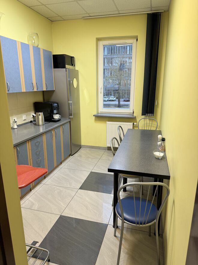 W skład lokalu wchodzi 5 pomieszczeń biurowych, a ponadto jedno pomieszczenie socjalne – kuchnia , jedno pomieszczenie biurowe archiwum, dwa WC, szafy wnękowe na garderobę, oraz wbudowane regały na materiały biurowe.
