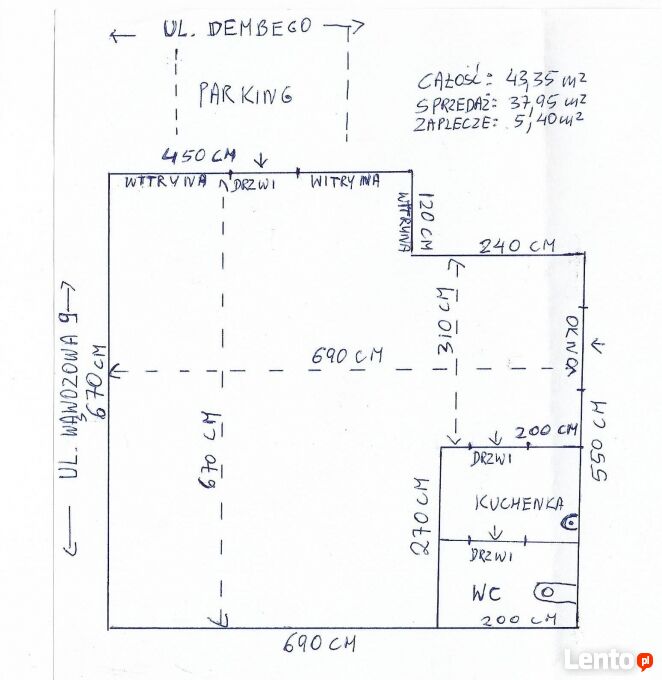 - powierzchnia nadająca sie do użytku komercyjnego 43 m kw