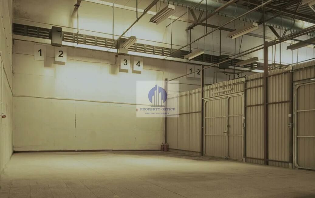 Magazyn wewnętrzny w hali na poziomie parteru wydzielony z dużej hali magazynowej.
