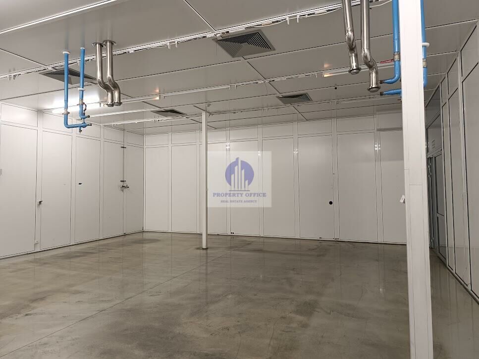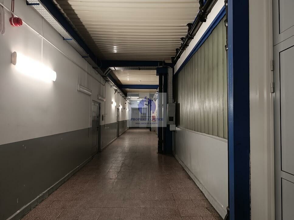 Powierzchnia magazynowa z dostępem z korytarza wewnątrz dużej hali magazynowej.