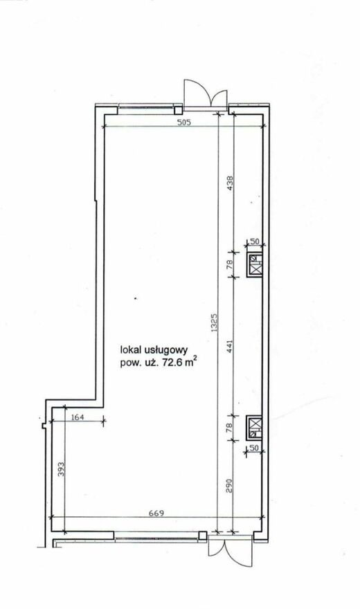 Wejścia: frontowe od ulicy oraz dodatkowe od zaplecza