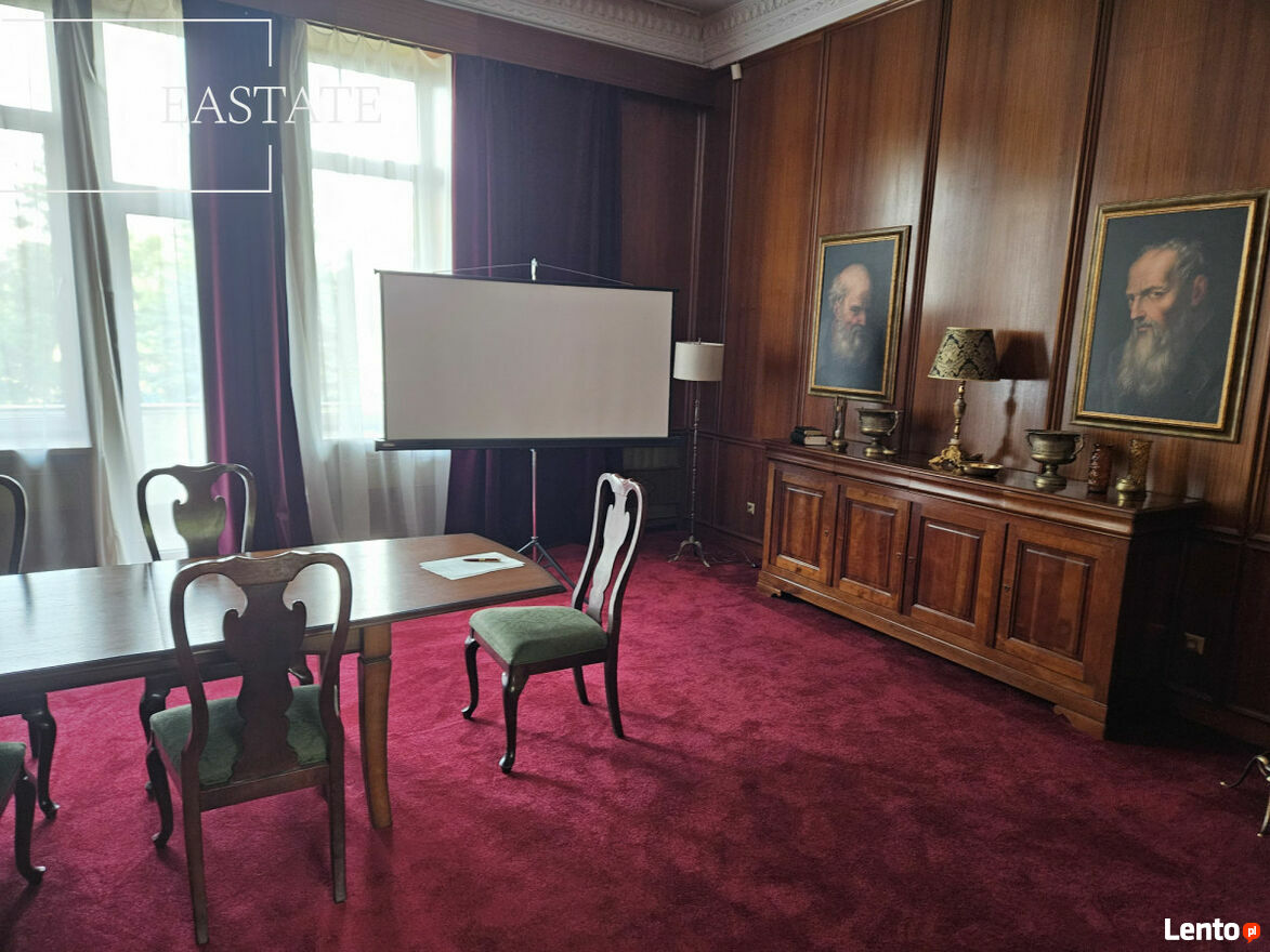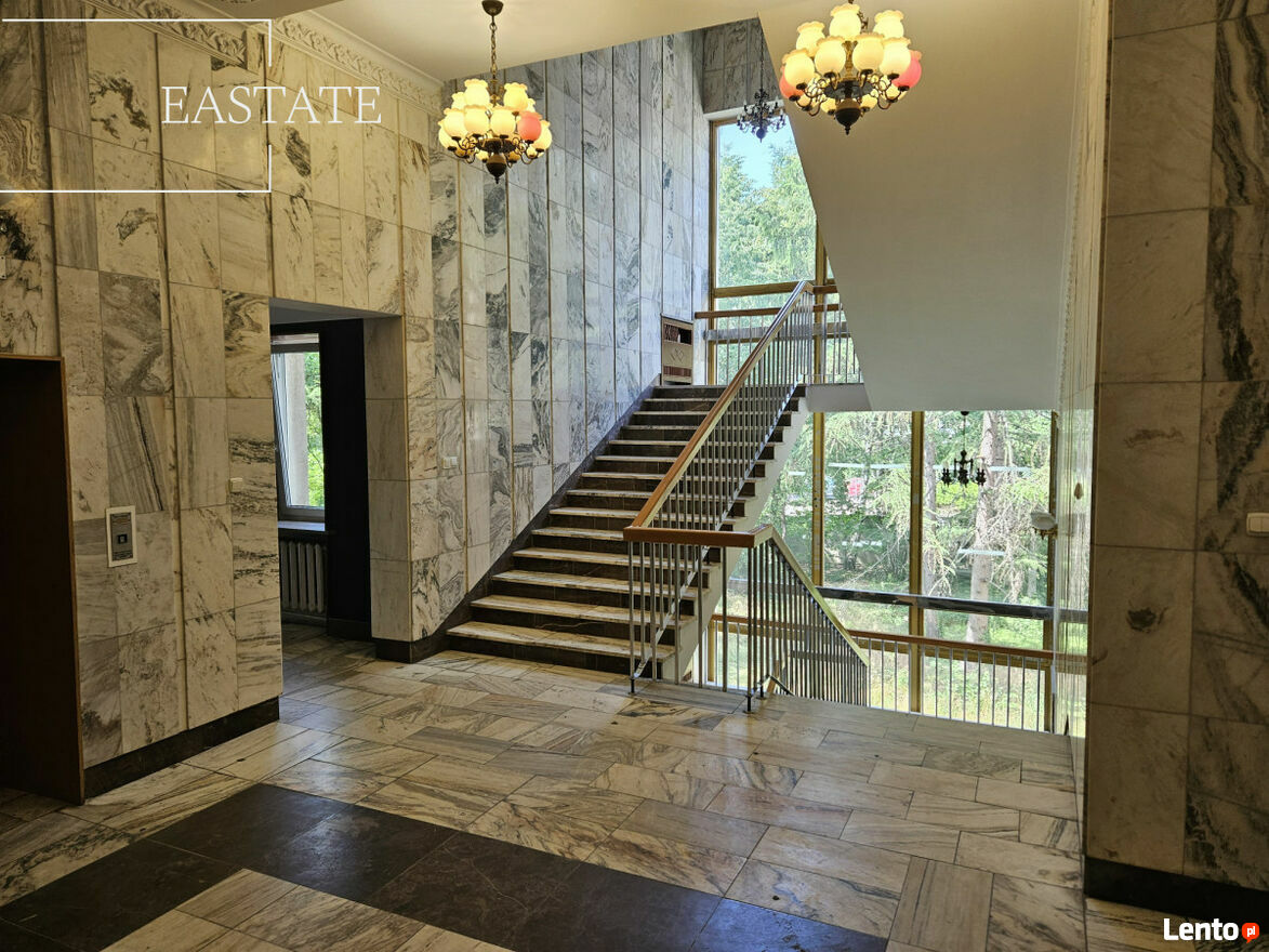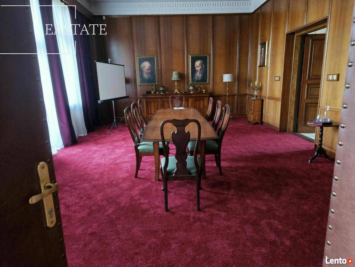 Przestrzeń idealna do aranżacji zgodnie z Twoimi potrzebami biznesowymi. Do biura przynależą liczne piękne pokoje ze zdobionymi sufitami. Większość budynku jest wyłożona jasnym marmurem, z sufitów zwisają kryształowe żyrandole.