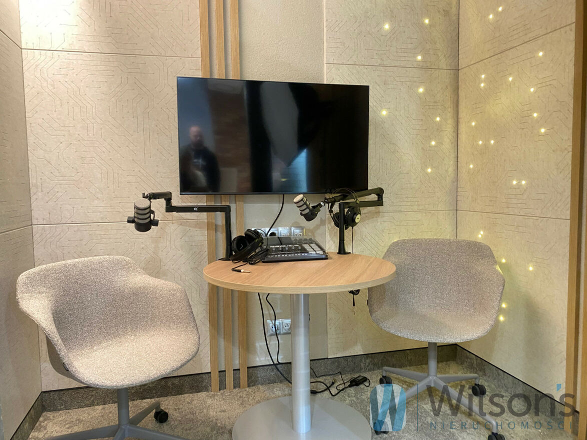 - komfortowe warunki, kilka sal konferencyjnych, pokój nagrań, pokoje relaksu, luksusowo wyposażona kuchnia, dostępność kawy, soków , wody