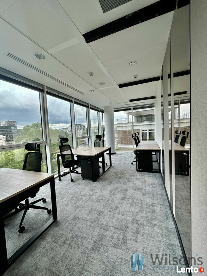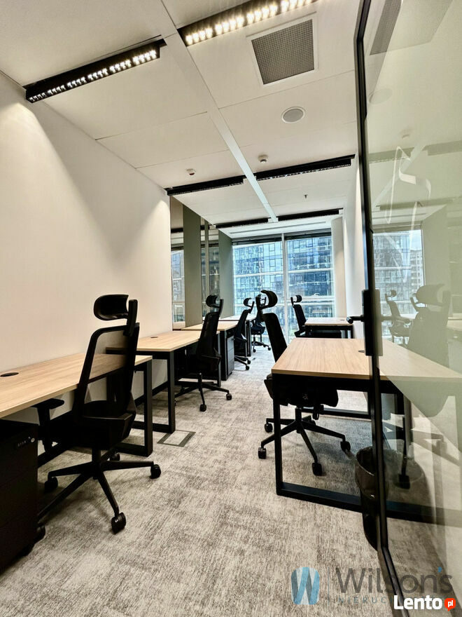 - Prywatne biuro z stanowiskami pracy, w pełni wyposażone i umeblowane