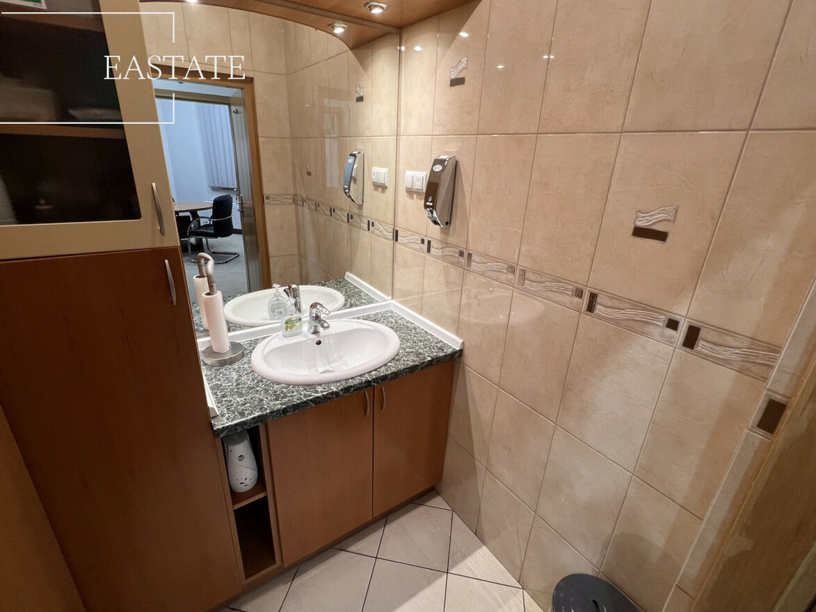 Lokal jest jasny, klimatyzowany i posiada bardzo ustawny układ, umożliwiający wygodne korzystanie zarówno przez pracowników, jak i klientów. Na piętrze znajdują się tylko dwa lokale, a dostęp do przestrzeni zapewnia prywatna winda - co gwarantuje kameralne, spokojne i prestiżowe warunki pracy. Budynek objęty jest całodobową ochroną i monitoringiem.