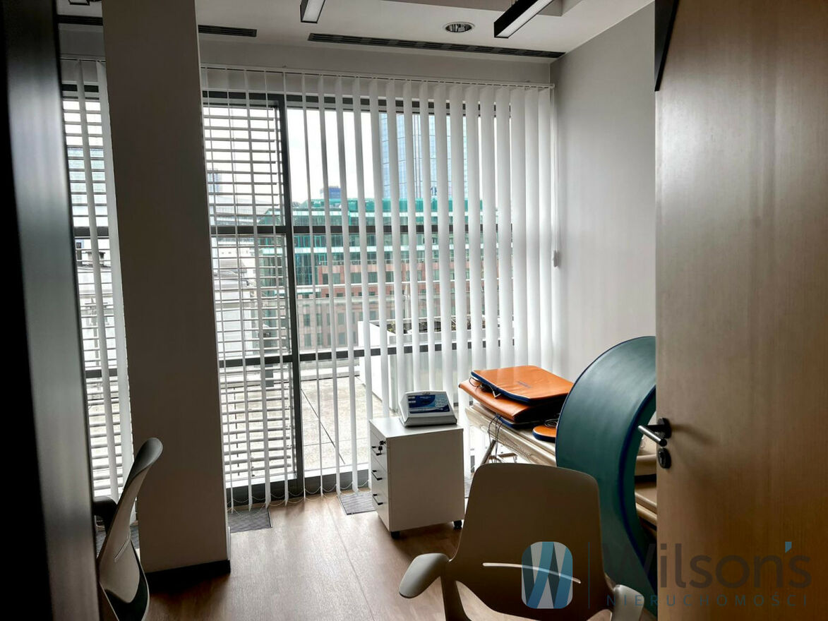 Prywatny taras wzdłuż całego biura: Absolutny unikat! Przestronny taras z widokiem na panoramę Warszawy, który możesz dowolnie zaaranżować - stwórz tam luksusową strefę relaksu dla pacjentów lub ogród dla pracowników.