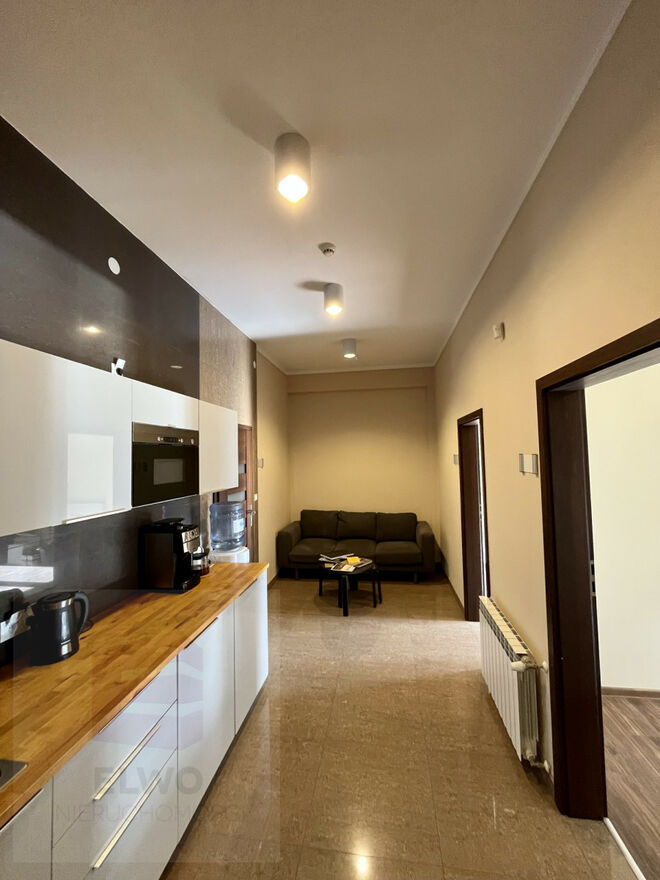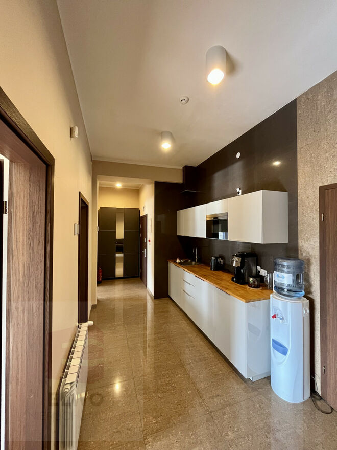 Biuro będzie do wynajęcia bez mebli widocznych na zdjęciu i bez zabudowy kuchennej, istnieje możliwość nabycia rzeczy od aktualnego klienta, który preferuje sprzedaż całego wyposażenia.