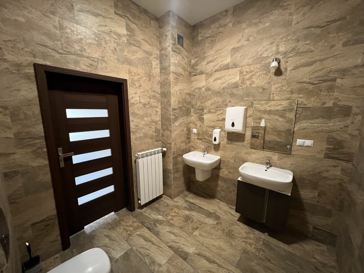 Budynek z odnowioną elewacją. Dodatkowo jest zabezpieczony przez profesjonalny monitoring oraz firmę ochroniarską. Jest również możliwość korzystania z parkingu na terenie obiektu. Do budynku doprowadzony został światłowód, dzięki czemu jakość Internetu jest świetna.