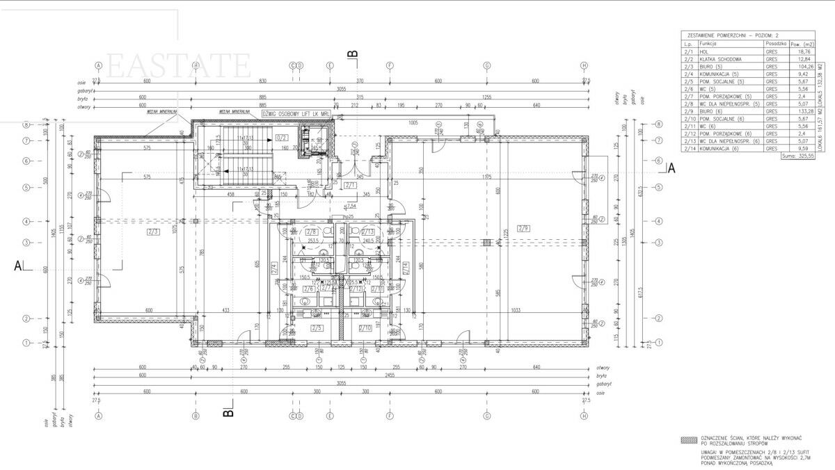 Wykaz powierzchni:
