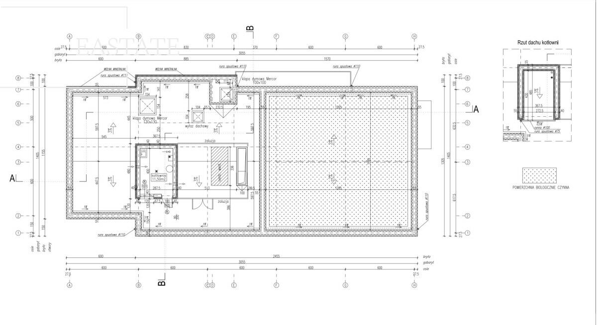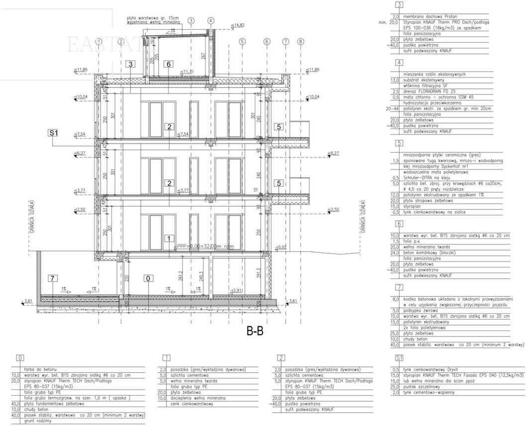 Rodzaj dachu: płaski, nachylenie 3%.