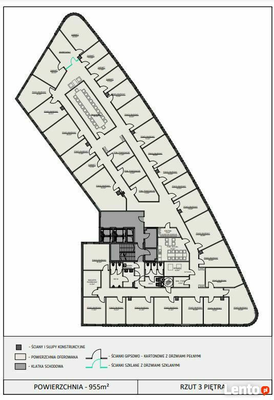 Łączny koszt wynajmu powierzchni 955 m² wynosi około 83 696,2 PLN netto miesięcznie (bez kosztów parkingu i mediów).
