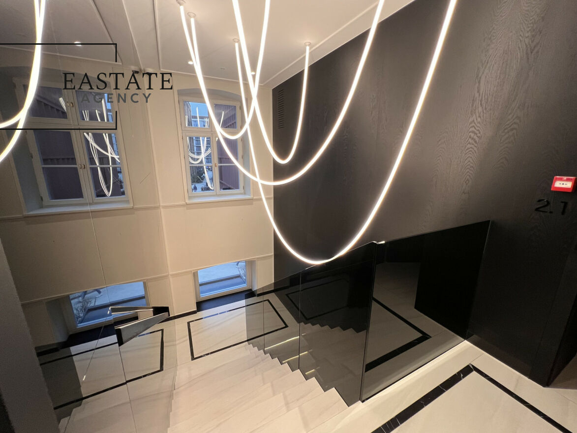 Budynek wyróżnia się unikalną architekturą, która łączy historyczną ceglaną elewację z nowoczesnym, designerskim wnętrzem wykończonym w standardzie premium. Eleganckie części wspólne, wysokiej jakości materiały oraz nowoczesne oświetlenie podkreślają prestiżowy charakter nieruchomości.