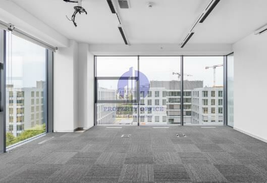 Biuro posiada przeszklenia oraz panoramiczne, uchylne okna, które zapewniają duży komfort pracy dzięki dostępowi światła dziennego.