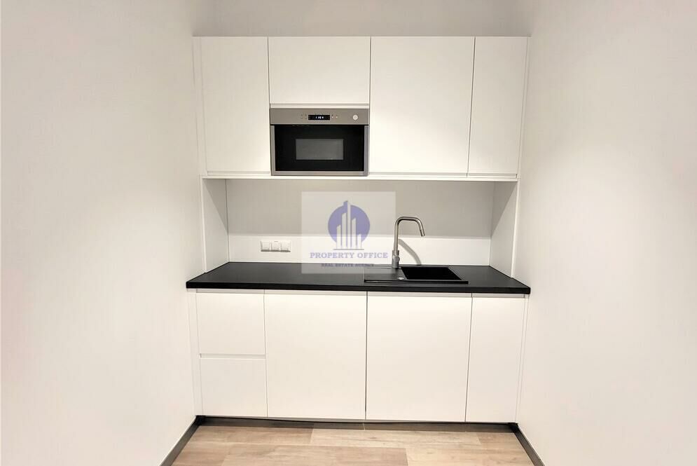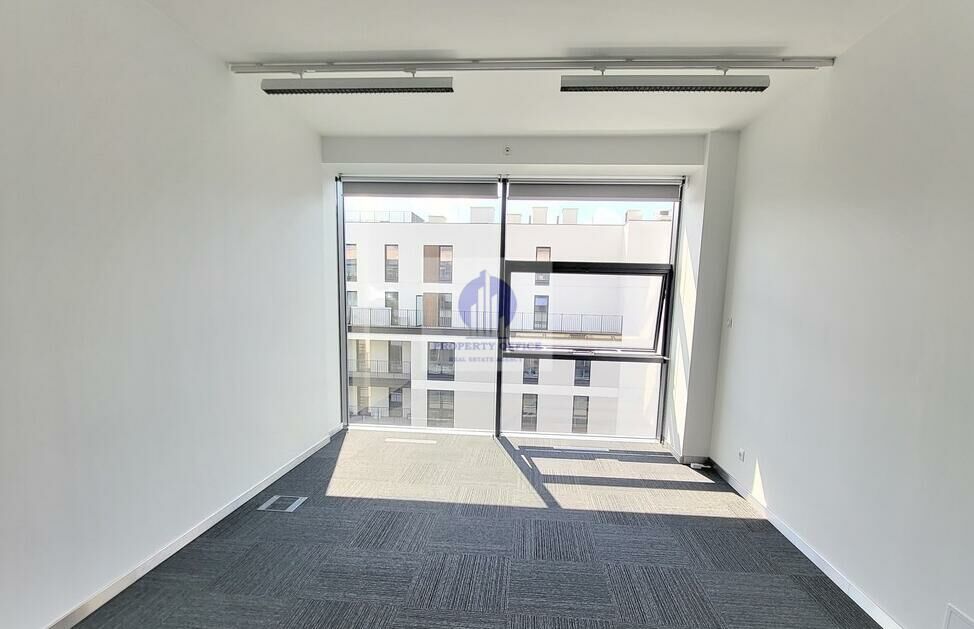 Biuro jest przygotowane w wysokim standardzie, doskonale doświetlone dzięki obecności dużych, otwieralnych okien.