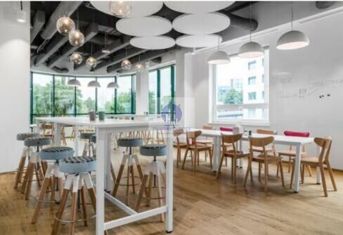 Wnętrze wyróżnia się designerskimi strefami kreatywnymi, salami konferencyjnymi, kuchniami oraz miejscami do relaksu, co zapewnia komfortowe warunki pracy.
