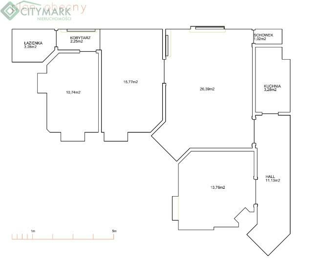 Mieszkanie składa się z 4 pokoi, korytarza, kuchni, schowka oraz łazienki