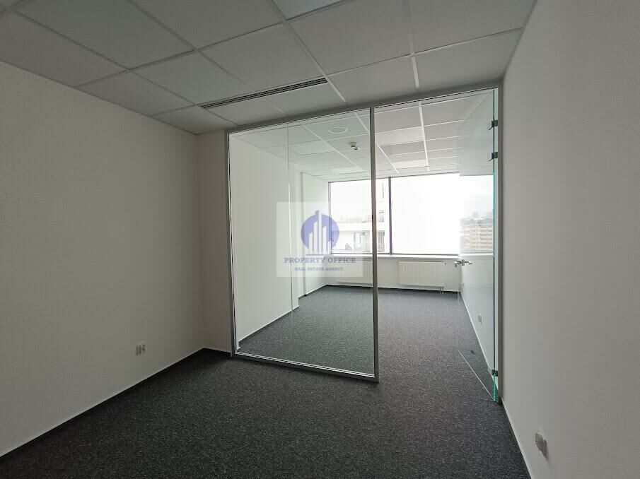 Oferowany lokal biurowy to jeden pokój z poprzeczną szklaną ścianką działową i wejściem z korytarza.