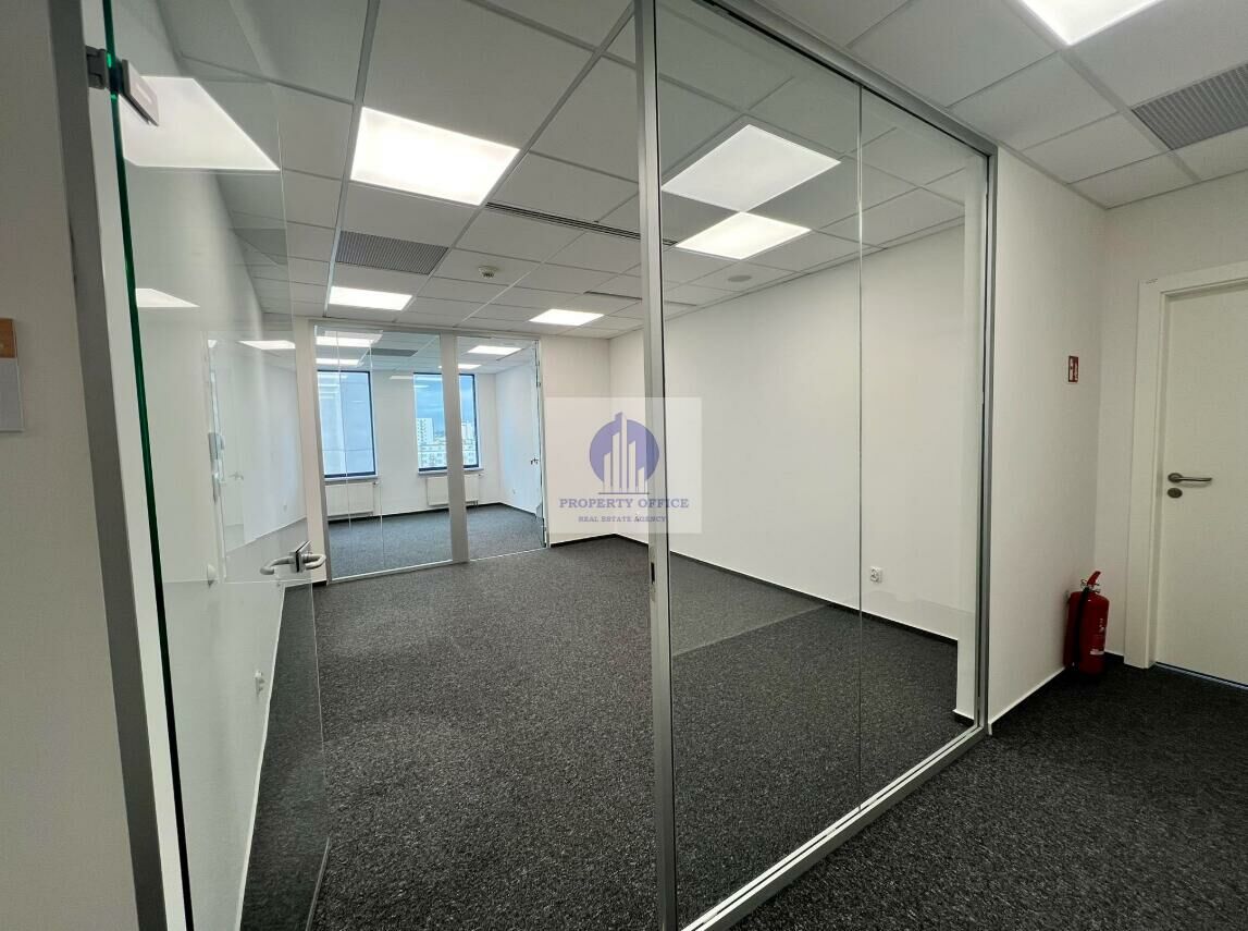 Oferowany lokal biurowy to jeden pokój z poprzeczną szklaną ścianką działową i wejściem z korytarza.