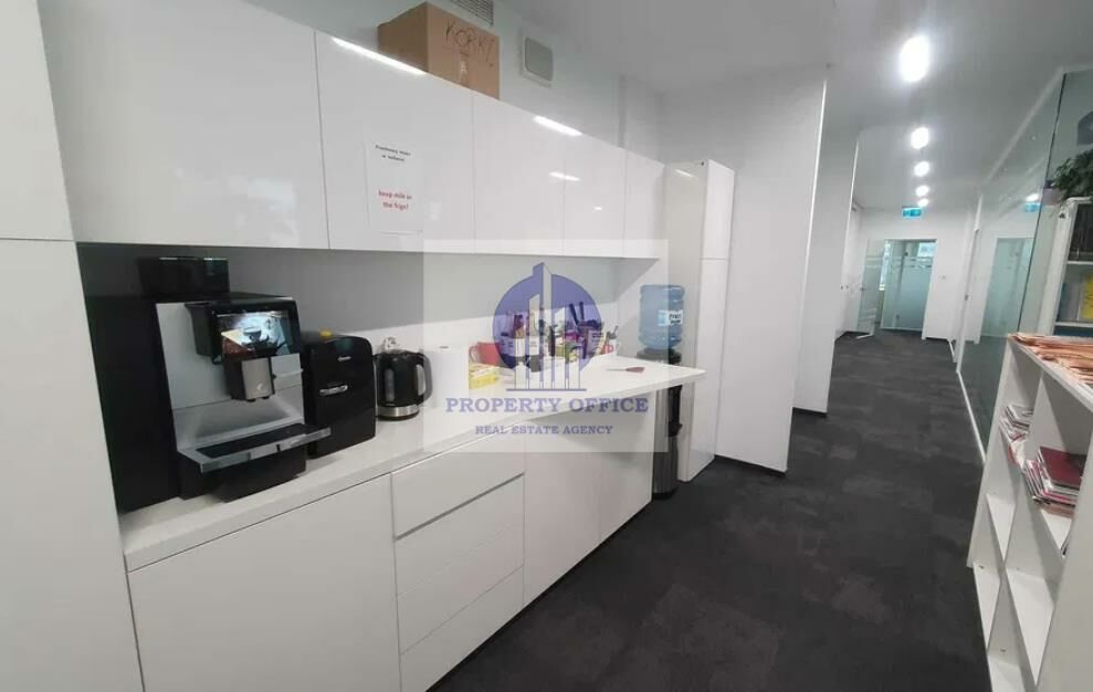 Lokal biurowy w układzie mieszanym: open space + pokoje biurowe.