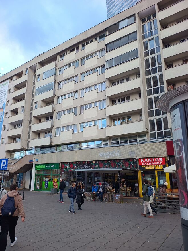 Budynek po remontach i modernizacjach wybudowany w technologii wielka płyty.