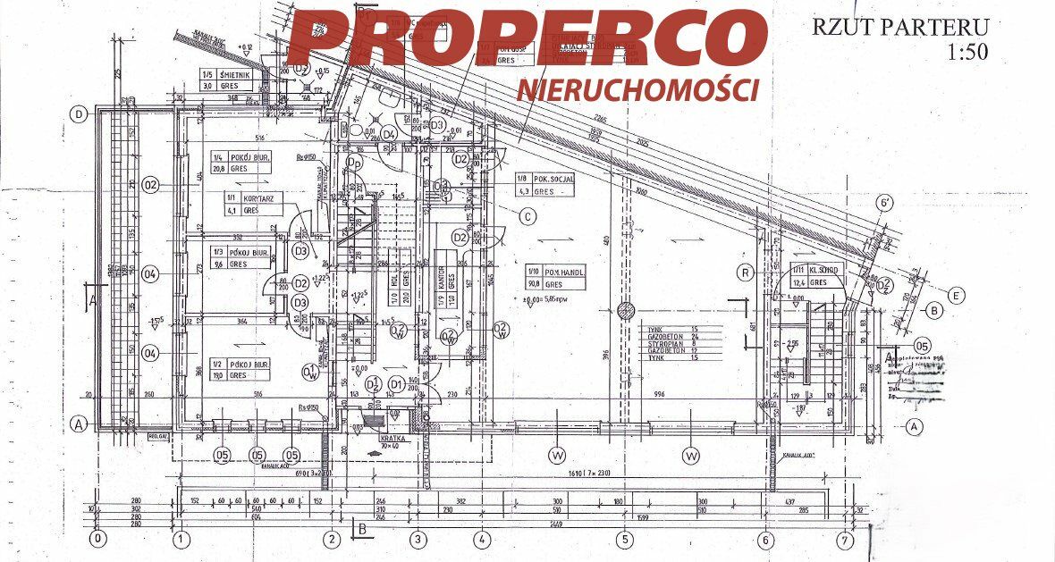 Parter 202,08 m2 : 3 pomieszczenia biurowe, pomieszczenie usługowe open space, pomieszczenie socjalne, pomieszczenie gospodarcze, WC.