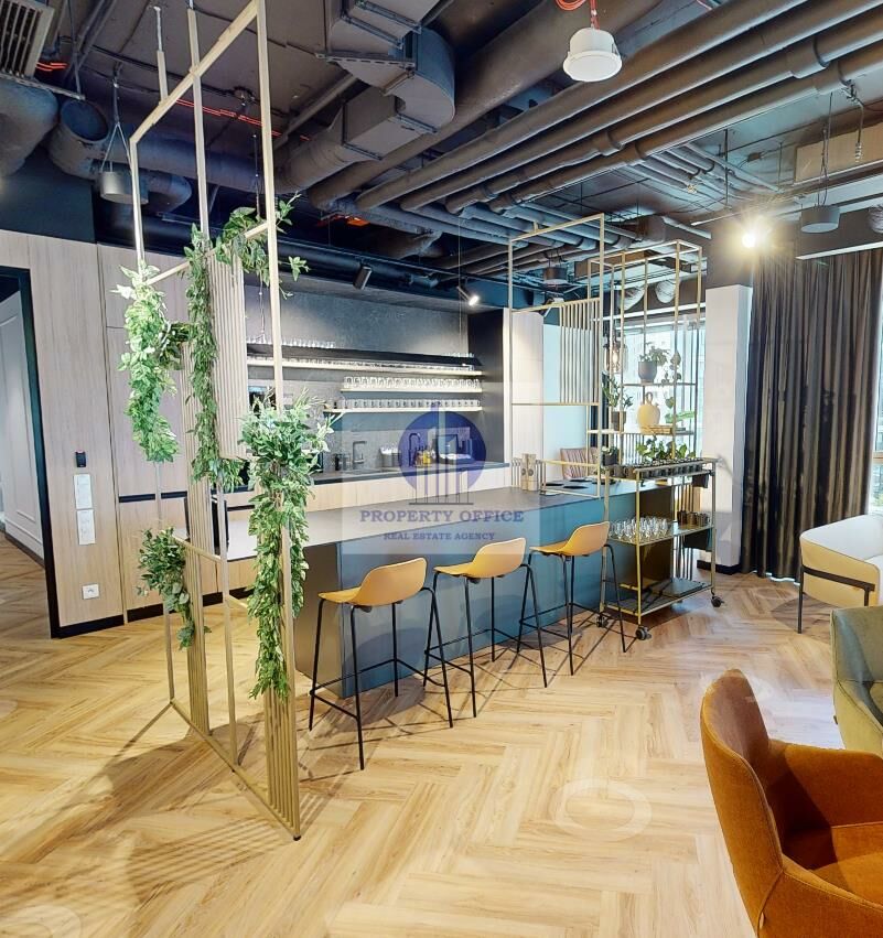 Lokal z gotowymi stanowiskami pracy, wyposażony w biurka, krzesła i szafki.
