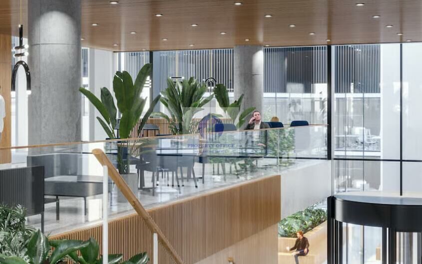 Na najwyższych piętrach: tarasy-ogrody o powierzchni blisko 900 m z przestrzeniami coworkingowymi i strefami eventowymi.