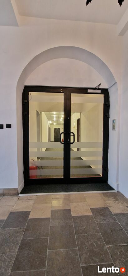 Lokal biurowy 17m2 znajduje się na pierwszym piętrze budynku, posiada dostęp do mediów, możliwość podłączenia telefonu i internetu. Wejście do budynku, oraz drzwi wejściowe na piętrze z klatki schodowej zabezpieczone domofonem. Widok na Starówkę.