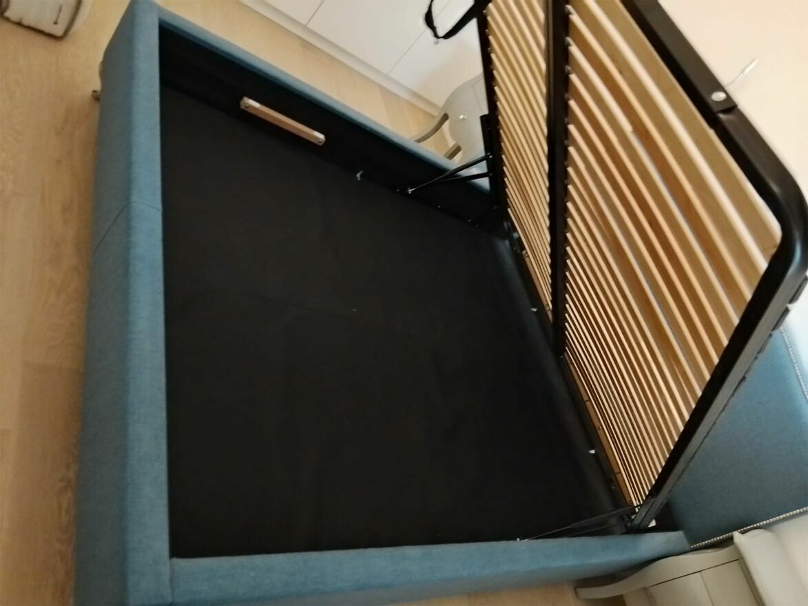 Sprzedam łóżko tapicerowane Livio Fabryka Sypialni z pojemnikiem na pościel. Pięknie wykonane, tkanina łatwa w utrzymaniu. Do łóżka zamówiono nóżki premium.Wymiary: