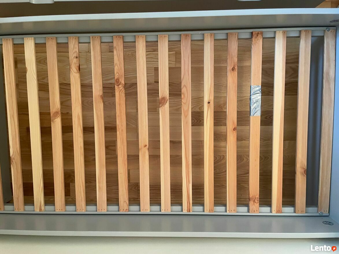 Dwa szczebelki w łóżeczku są pęknięte, co widać na zdjęciu. Nie wpływa to jednak na jakoś snu. Trzeba uważać żeby dziecko po nim nie skakało.