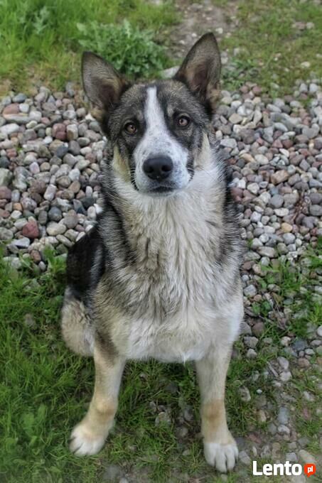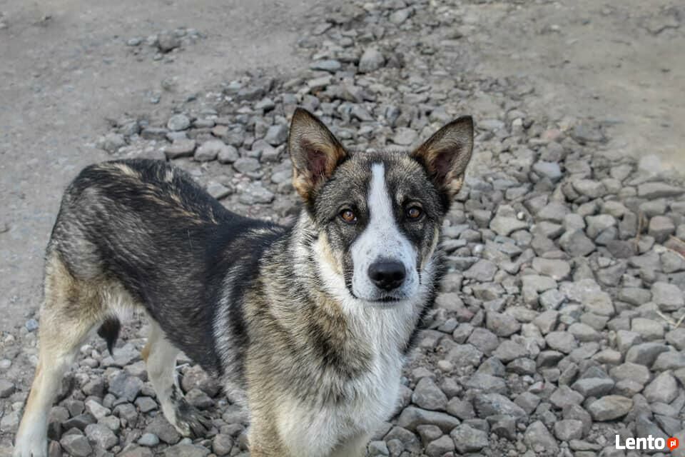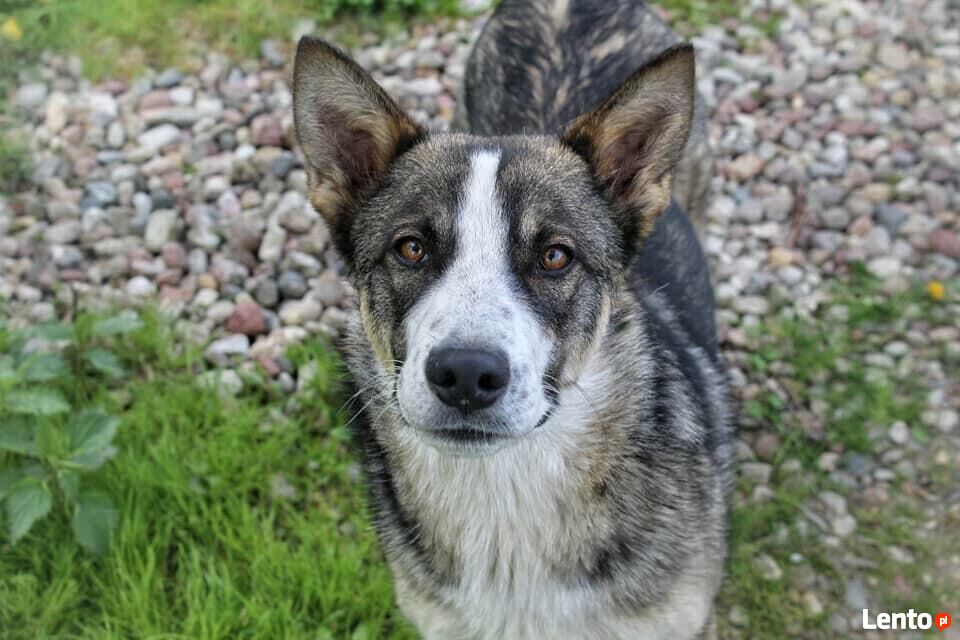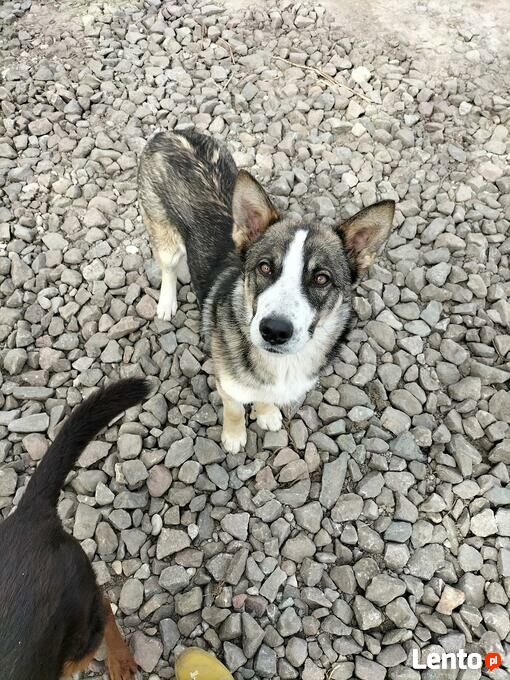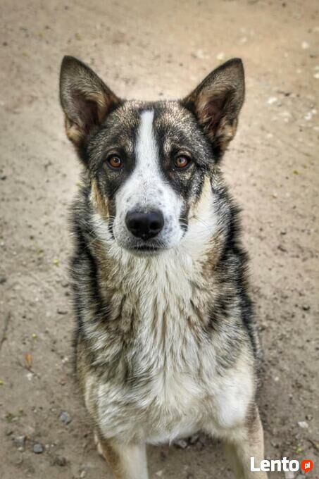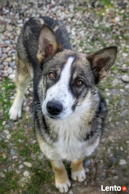 To cudowny psi chłopiec w wieku około roku. Jest w typie husky, jednak podejrzewamy, że już niewiele urośnie. Raczej przybierze masy.