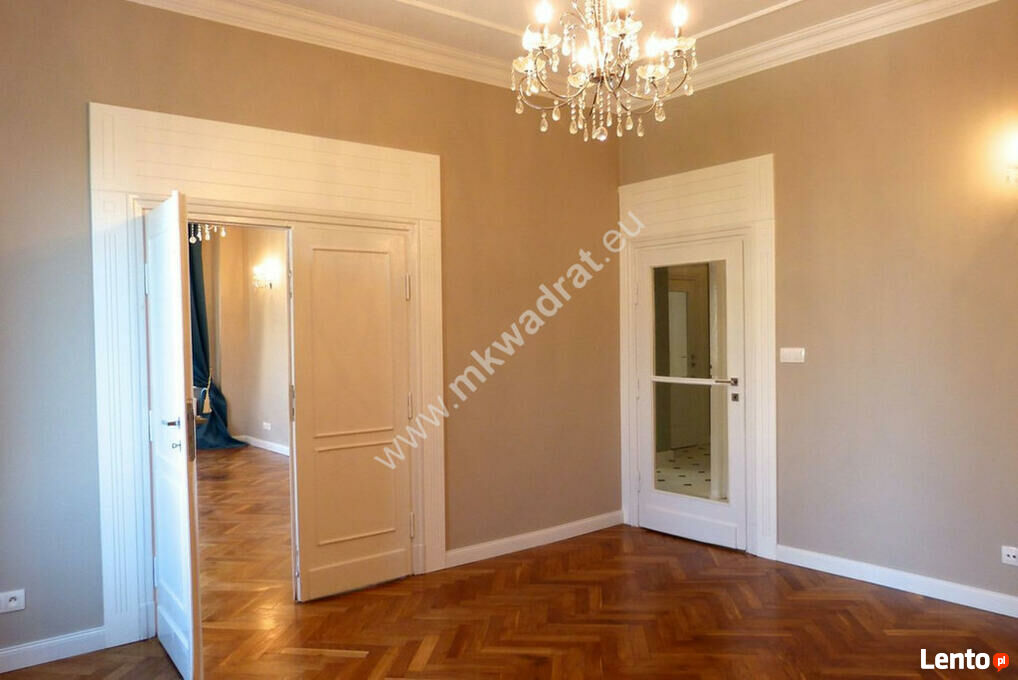 zabytkowy parkiet, oryginalne odrestaurowane drzwi z fazowanymi