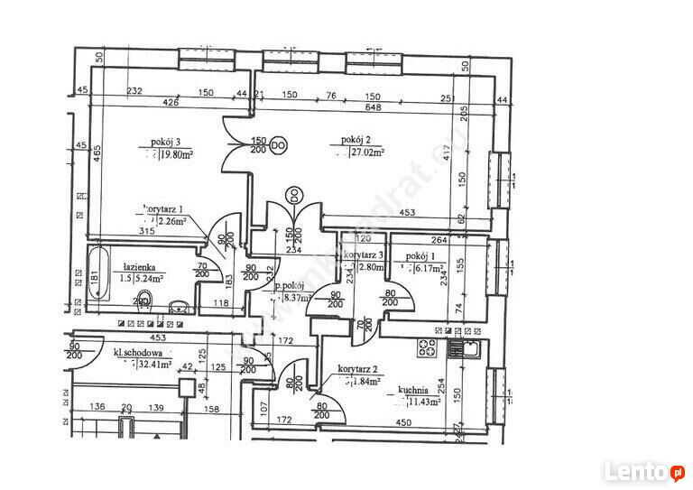 Lokal składa się z 4 pokojów (27, 20, 12 i 10 m), hallu