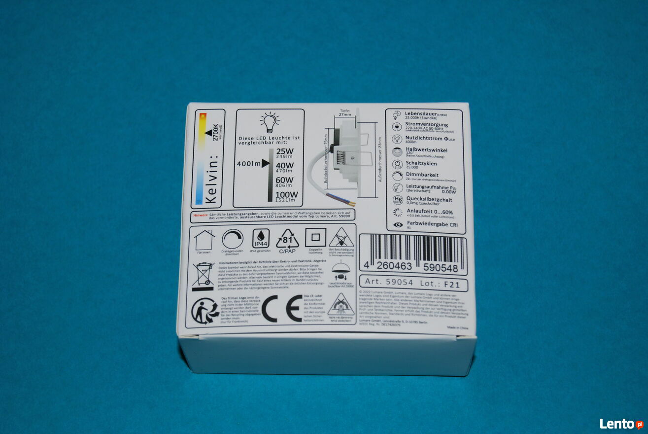 Dzień dobry.Sprzedam lampę sufitową Lumare 4W 2700K 6szt. Zapewnia niemigoczące, przyjemnie ciepłe światło przy niskim zużyciu energii. Dzięki klasie ochrony IP44 nadaje się również do wilgotnych pomieszczeń. W tym reflektorze LED żarówka jest wymienna. Dzięki temu można go łatwo wymienić, a w nieprawdopodobnym przypadku awarii nie trzeba wyrzucać całego reflektora. Ten produkt zawiera źródło światła o klasie efektywności energetycznej F. Bezpośrednie przyłącze dzięki wbudowanemu transformatorowi reflektory sufitowe można podłączyć bezpośrednio do 230V. Dzięki zintegrowanemu terminalowi przyłączeniowemu podłączenie jest szybkie i łatwe. Wymiary reflektora są kompaktowe i ma głębokość montażu 27mm, średnicę całkowitą 83mm i średnicę otworu 75mm. Energooszczędna lampa punktowa ma żywotność 25 000 godzin, a dzięki technologii LED jest wyjątkowo energooszczędna. Kąt świecenia 120° zapewnia naturalne i duże oświetlenie pomieszczenia. Dzięki współczynnikowi oddawania barw (CRI) >80 lampa zapewnia żywe kolory i pełną jasność bezpośrednio po włączeniu, tworząc przyjemne uczucie w pomieszczeniu.