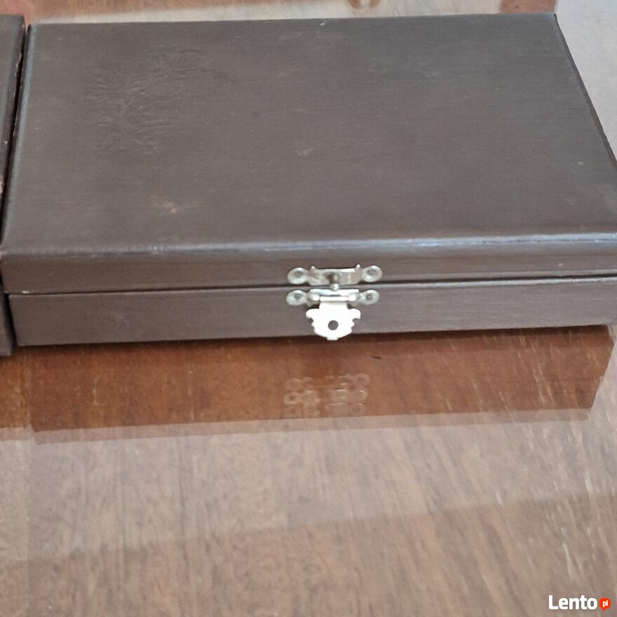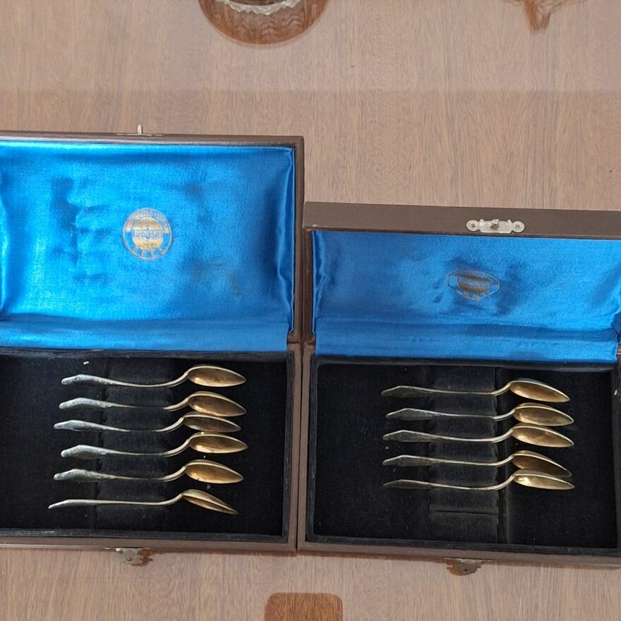 Łyżeczki do kawy srebrne pozłacane 11 szt. (niestety jedna na przestrzeni dziejów zaginęła). Sygnatura lo lewej stronie MM4 a po prawej jakiś symbol (chyba głowa kobiety) i 875 (niestety nie mam lepszego aparatu a przez szkło powiększające też nie widać)Waga 121 g. Jedno pudełko nie ma bolców w zawiasach. Stan jak na zdjęciach. Nic nie "pudrowane" Do ewentualnego obejrzenia w Warszawie Gocław. Sprzedaż tylko w komplecieSprawdź zainteresowanie tym ogłoszeniem