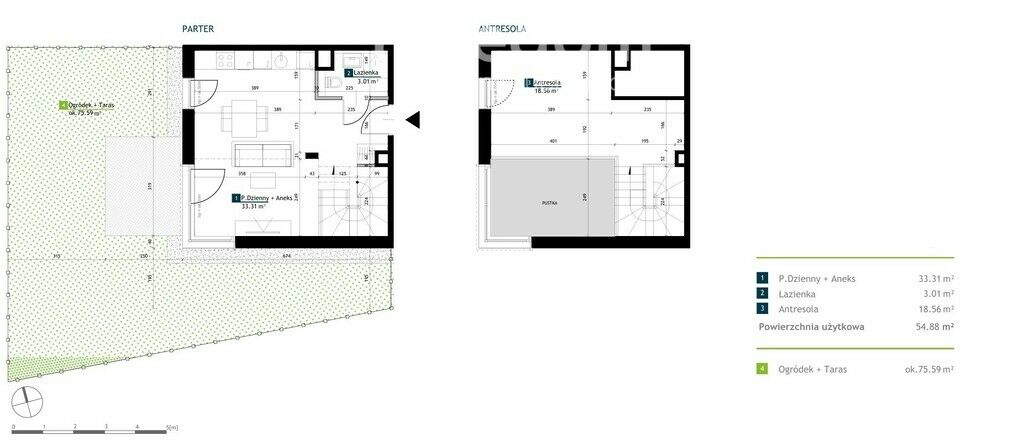Mieszkanie posiada ogród z tarasem (75.99 m2).