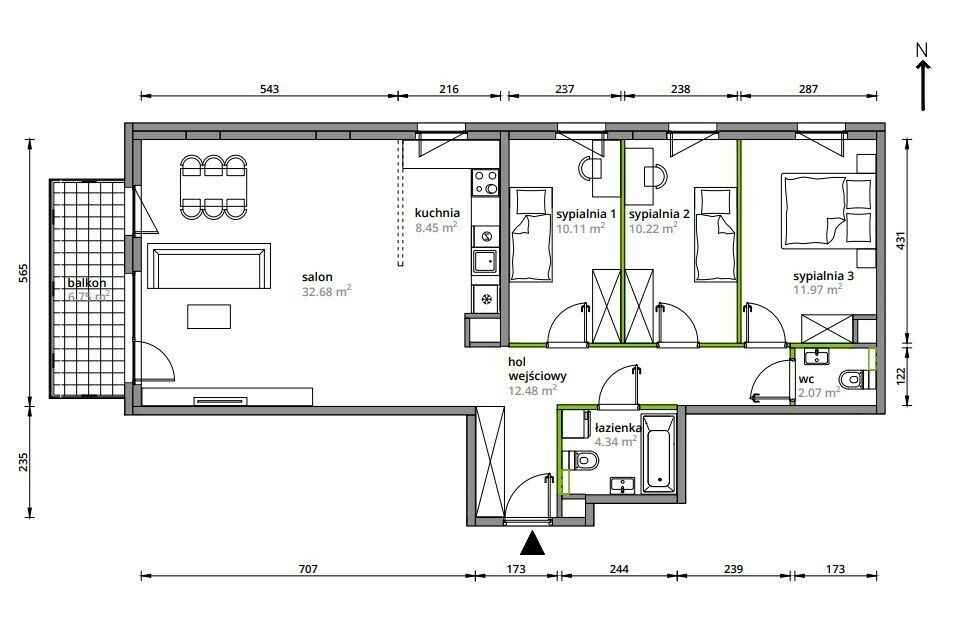 - Pokoju dziennego z aneksem kuchennym (41,13 m2)