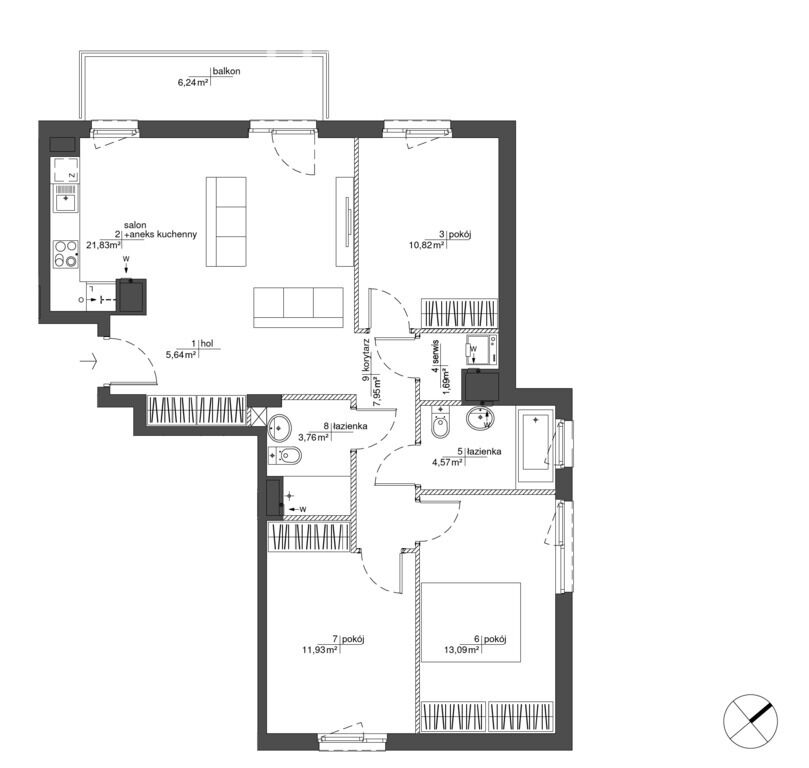 - pokoju dziennego z aneksem kuchennym - 21,83 m2