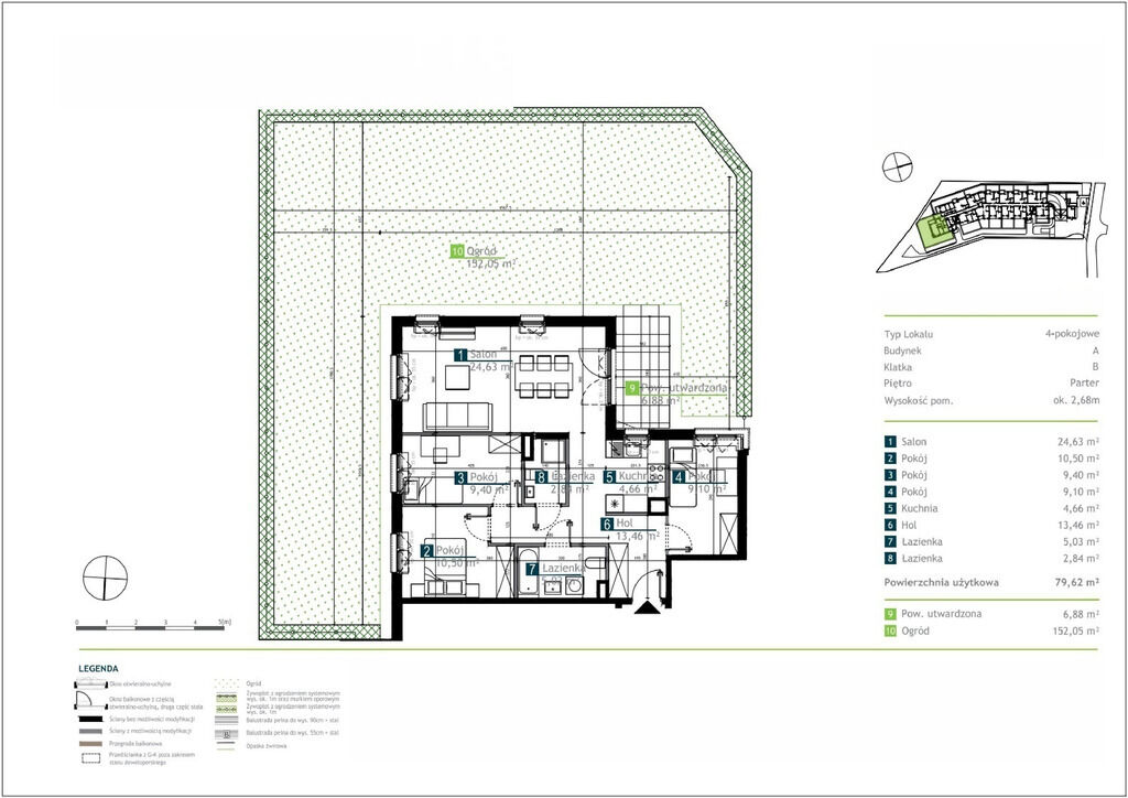 + Ogródek (152,05 m2) w tym taras (6,88 m2)