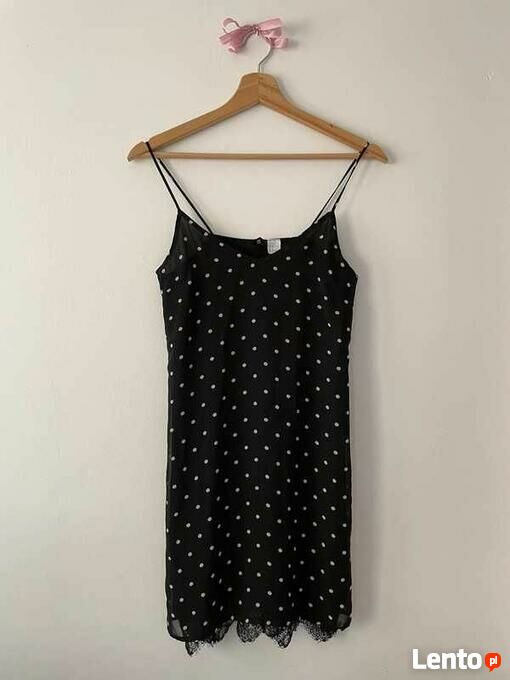 Mała czarna bieliźniana sukienka na ramiaczkach kropki hm 32