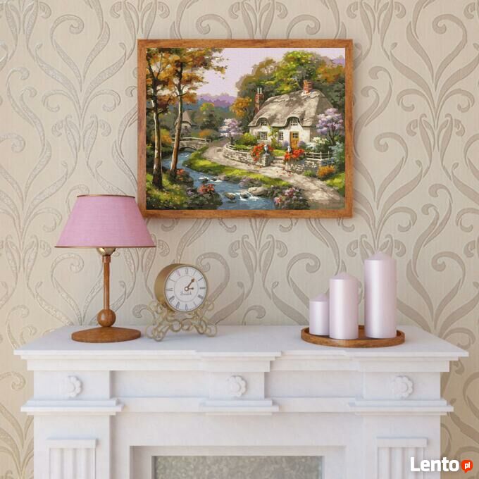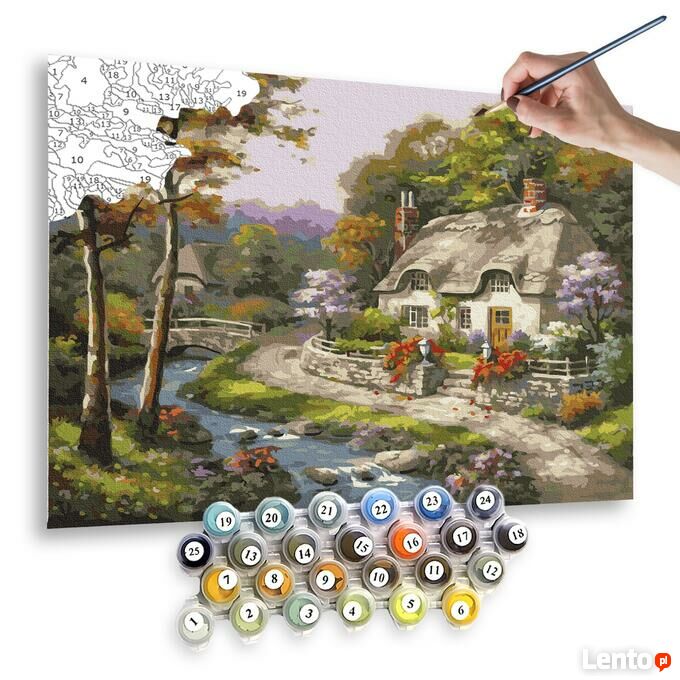 Obraz malowany po numerach 40x50 na blejtramie "Domek na wsi"Zestaw zawiera: