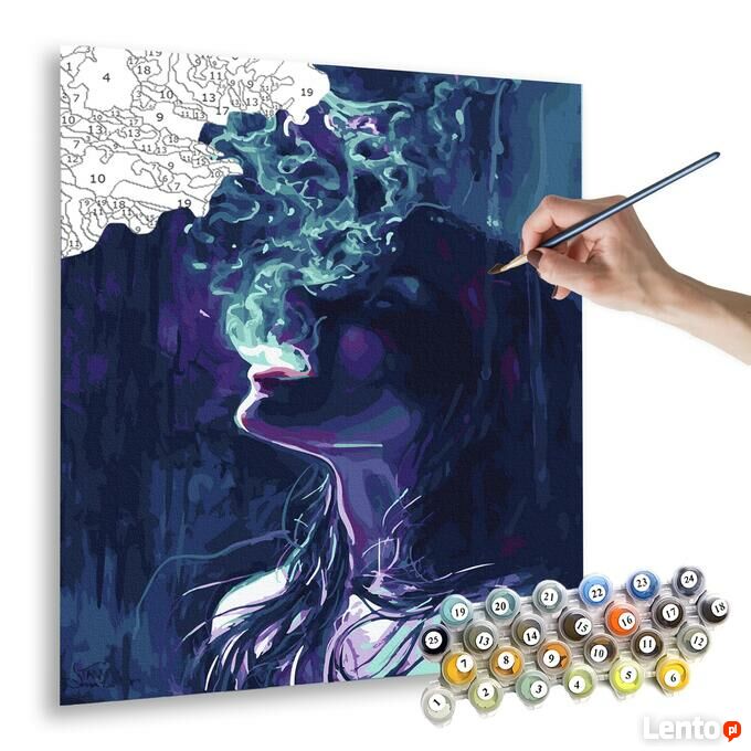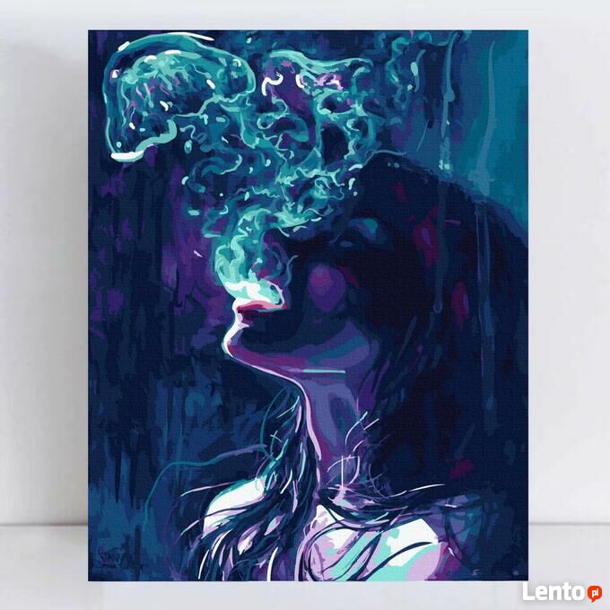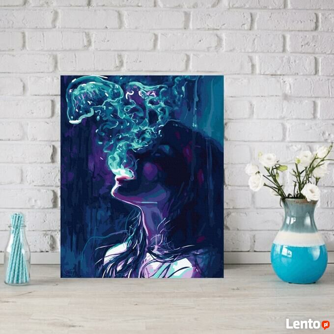 Obraz malowany po numerach 40x50 na blejtramie "Błękitny dym "Zestaw zawiera: