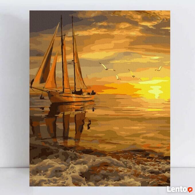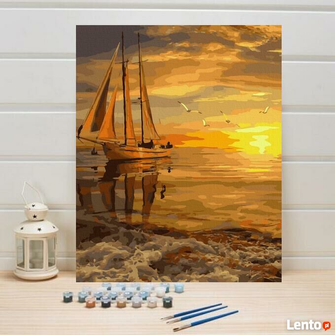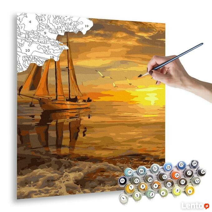 Obraz malowany po numerach 40x50 na blejtramie " Zachód słońca "Zestaw zawiera: